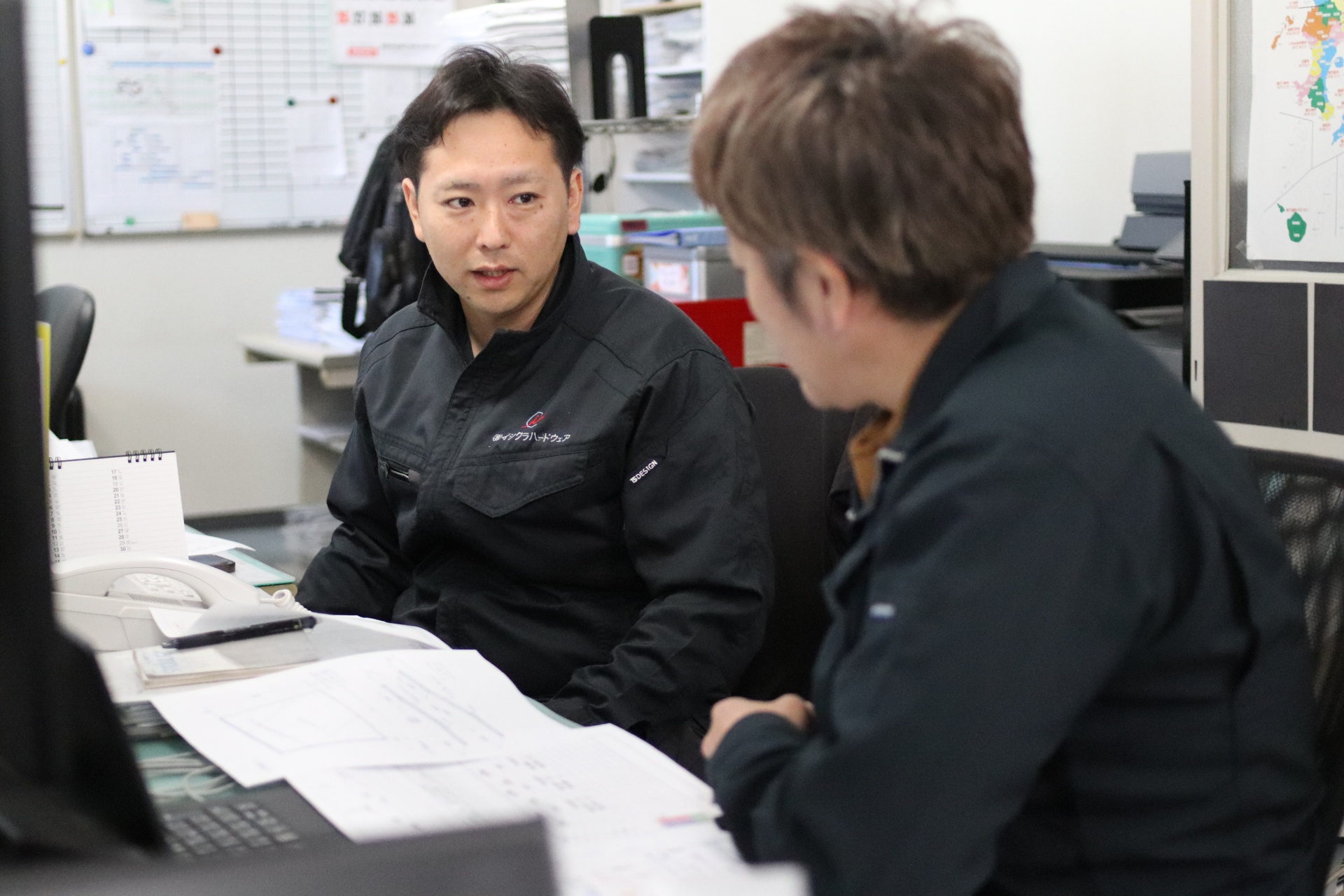 「前職は建設現場の職人でした。出張や夜間作業が多く、家族との時間が取れないことが悩みだった時に、仕事を通じてご縁があった今の会社に声をかけてもらったのが転機です。今は子供たちと過ごす時間を大切にしながら働けています。前職の職人経験と、実は過去に保険営業の経験もあったので、その両方が今の糧になっています。一番のやりがいは、自分が手掛けた物件が街の風景として残ることです。先日、鹿児島市の温泉施設の現場を完成させました。温泉に家族と訪れ、「ここパパが作ったんだよ。」と子供に伝えられた瞬間は、何物にも代えがたい喜びでした。仕事の達成感と家族との幸せ、その両立をここで叶えています。」
