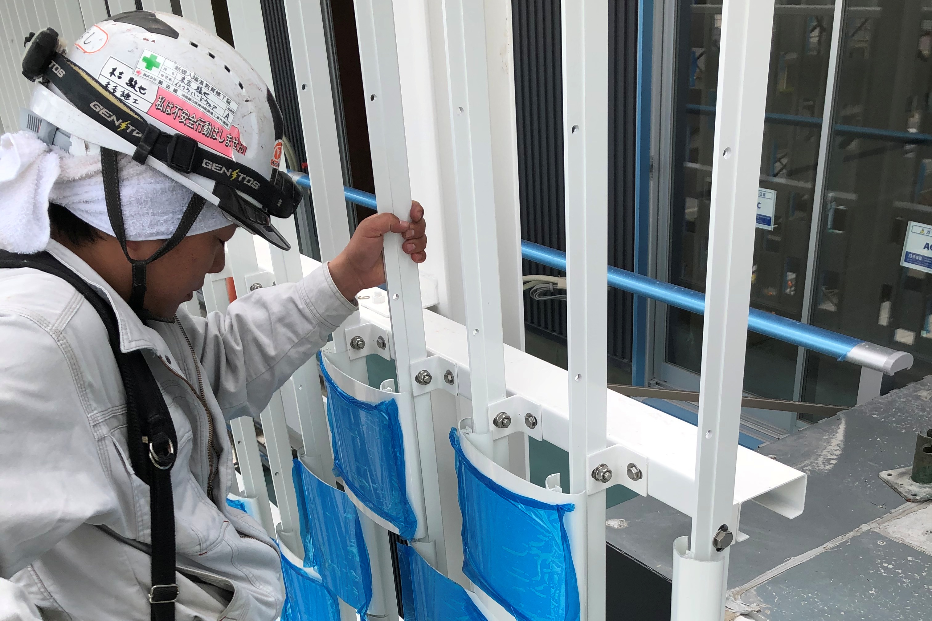 建築現場に携わる業界の中の建築金物の管理を行います。未経験の方でも、ベテランのスタッフが現場に同行し、内容や手順をアドバイスしますので安心してください。社員教育や資格取得へのサポートも会社全体で行っています。将来的には施工管理技士の資格を取得し、現場だけでなく会社を引っ張っていく存在になってくれることを期待しています。写真の「ららぽーと福岡」ではアーチ状の外装ルーバーを設置施工しました。